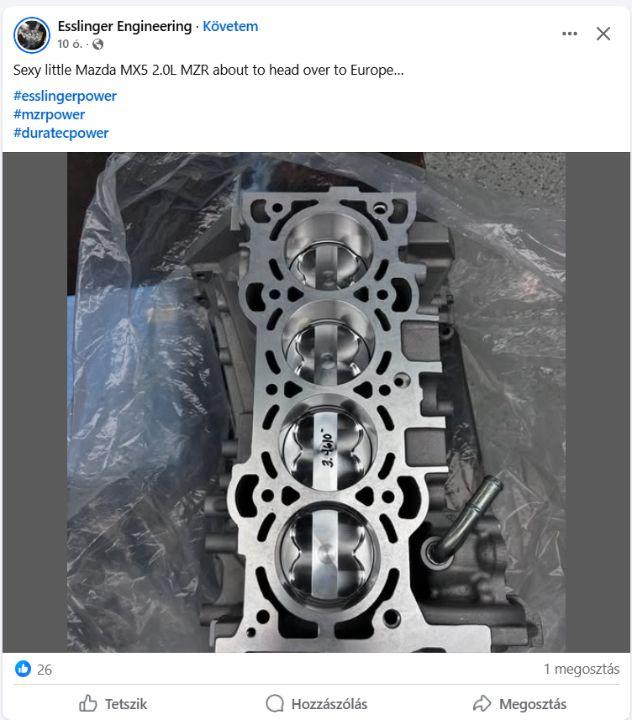 A blokk gyári MZR 2.0 alapú, de belül versenyszintű alkatrészeket és megmunkálást kapott.